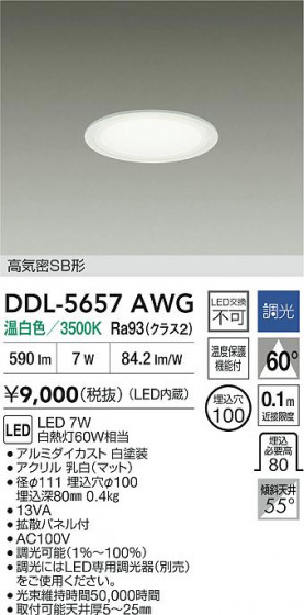 DAIKO 大光電機 LEDダウンライト DDL-5657AWG