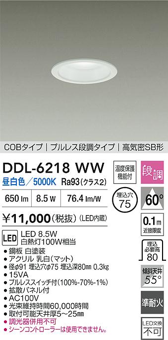 DAIKO 大光電機 LEDダウンライト DDL-6218WW