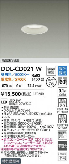 DAIKO 大光電機 LED調色ダウンライト DDL-CD021W