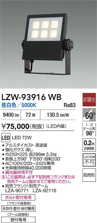 DAIKO 大光電機 LED アウトドアスポット LZW-93916WB